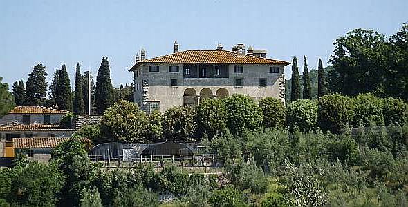 La villa si trova in posizione panoramica sulla sommità dell’omonimo colle sul quale si distende un bosco di querce e pini. Dalla strada principale si inerpica una lunga strada fiancheggiata da un doppio filare di cipressi, che conduce fino alla villa.