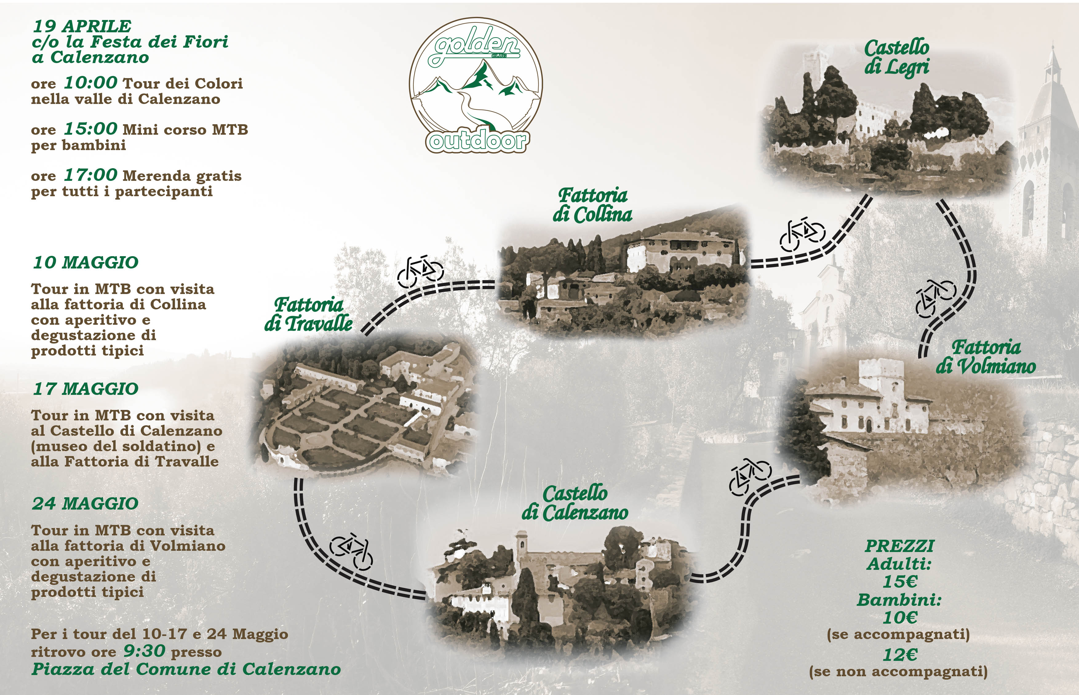 TOUR IN MOUNTAIN BIKE DI CALENZANO CON LO STAFF DELLA PALESTRA GOLDEN CLUB ED APERITIVO PRESSO LA FATTORIA DI COLLINA