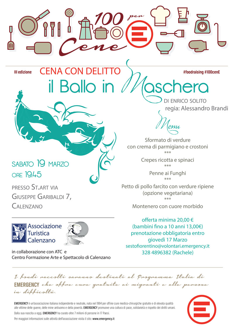 Terza Edizione Cena con Delitto – Sabato 19 marzo 2016 Tutte le info sul volantino qui allegato Silvio2016-03-07T19:52:01+01:007 Marzo 2016|Categorie: Eventi| CONDIVIDI! FacebookXLinkedInPinterest Post correlati D’Annunzio: Fiume e l’uomo nuovo 19 Gennaio 2021 #chiusinonfermi – il programma del Museo del Figurino Storico 20 Novembre 2020 viviAmo la Calvana! 25 Giugno 2020 8000 persone presenti a Lunaria 20 Giugno 2019 Mostra Mercato dell’Olio Extravergine di Oliva a Calenzano, XXII edizione – 2017 30 Ottobre 2017